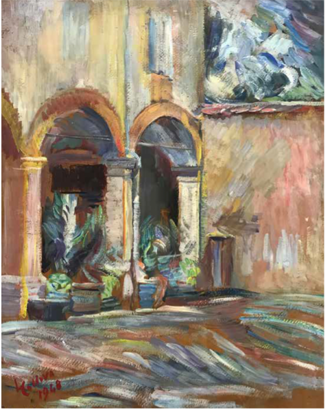 IL PORTICO DELL’OSPITALE DI LEA COLLIVA E VALLE AL MATTINO DI NINO BERTOCCHI.