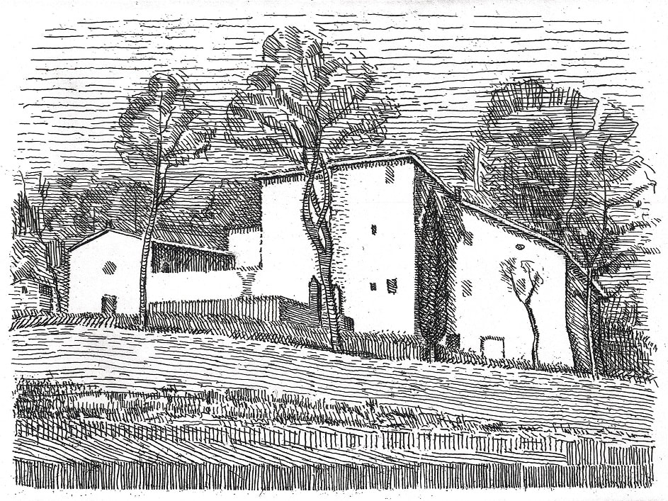 Ilario Rossi, L’Ospitale di Monzuno, 1987, acquaforte su zinco, cm 18 x 24, Collezione privata