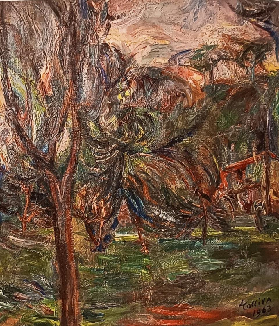 Dopo anni a ritrarre principalmente paesaggi, come esponente dell’Ultimo Naturalismo, frequentatrice dello studio di Flavio Bertelli (1865-1941) e, insieme a lui e ad altri artisti, ri-scopritrice di Luigi Bertelli (1833-1916), padre di Flavio, morto nella dimenticanza più completa, la Colliva inizia a mutare stile ed espressione, specialmente nel 1956, all’indomani della morte del cognato Nino Bertocchi (1900-1956) [1], che, forse, un po’ la influenzava nella scelta delle opere da esporre in un senso più tradizionalista e “schematico”.