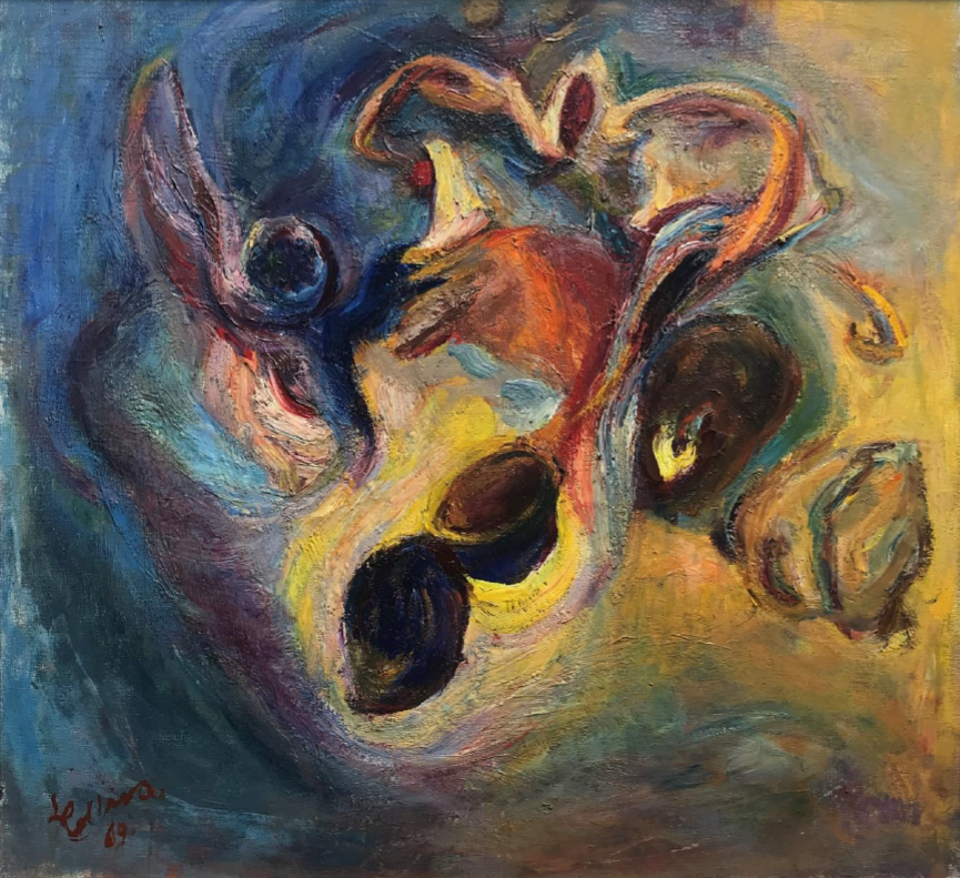 Lea Colliva, Accadimenti, 1969, olio su tela, 60×65 cm, Pinacoteca Bertocchi-Colliva