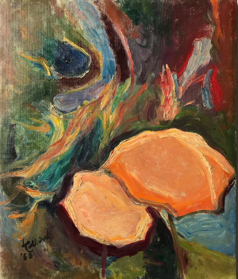 Lea Colliva, Tramonto inquietante, 1963, olio su tela, 54,5×45 cm, Pinacoteca Bertocchi-Colliva