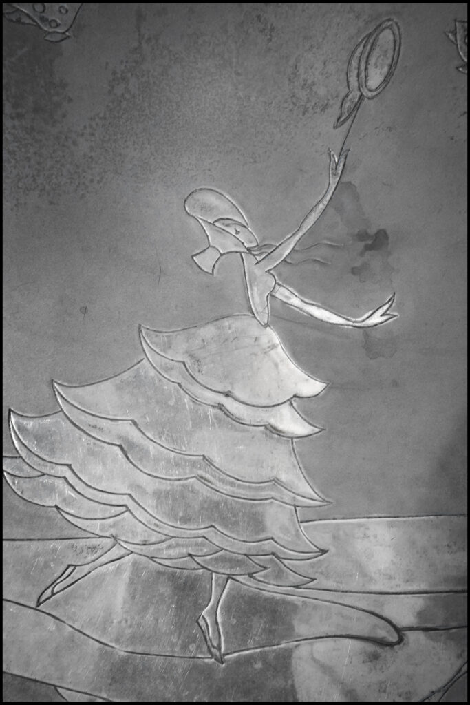 5. Emma Bonazzi, Scatola per Cioccolatini Perugina, s.d., velluto e argento, Museo Ottocento Bologna.