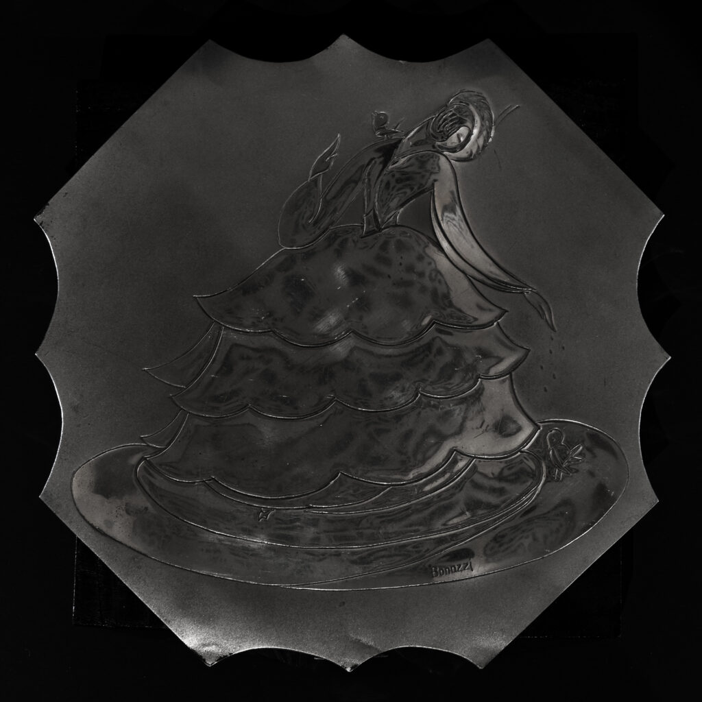 1. Emma Bonazzi, Scatola per Cioccolatini Perugina, s.d., velluto e argento, Museo Ottocento Bologna